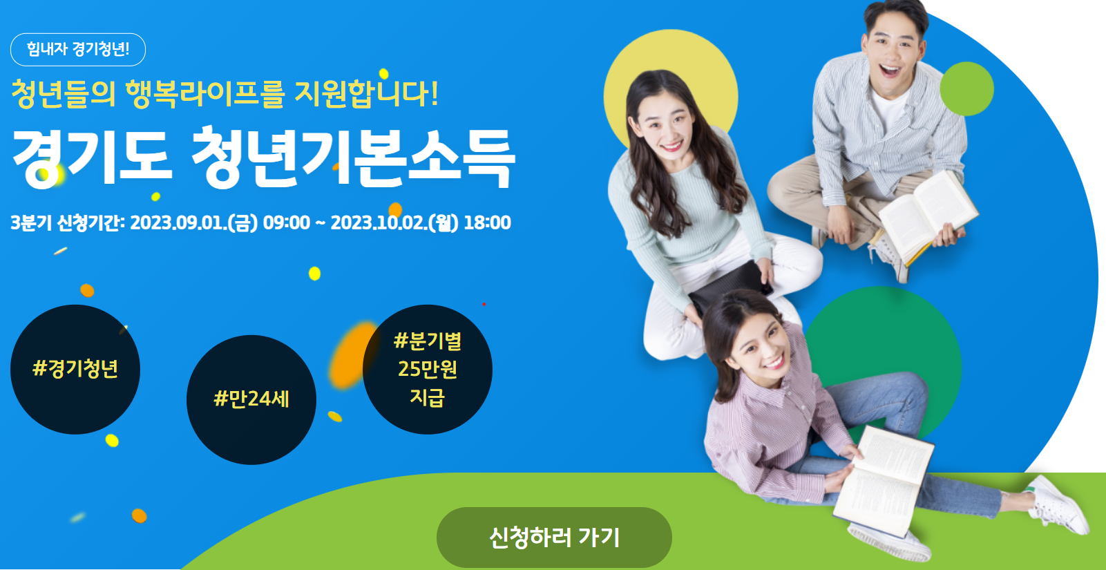 경기도에 사는 만 24세 청년이라면 3분기 청년기본소득 신청하셨나요? 9월은 청년 기본 소득 3분기 신청하는 달입니다. 깜빡하셨다면 지금이라도 서둘러서 신청해 놓으시고 소중한 기본소득 챙겨 가시길 바랍니다.